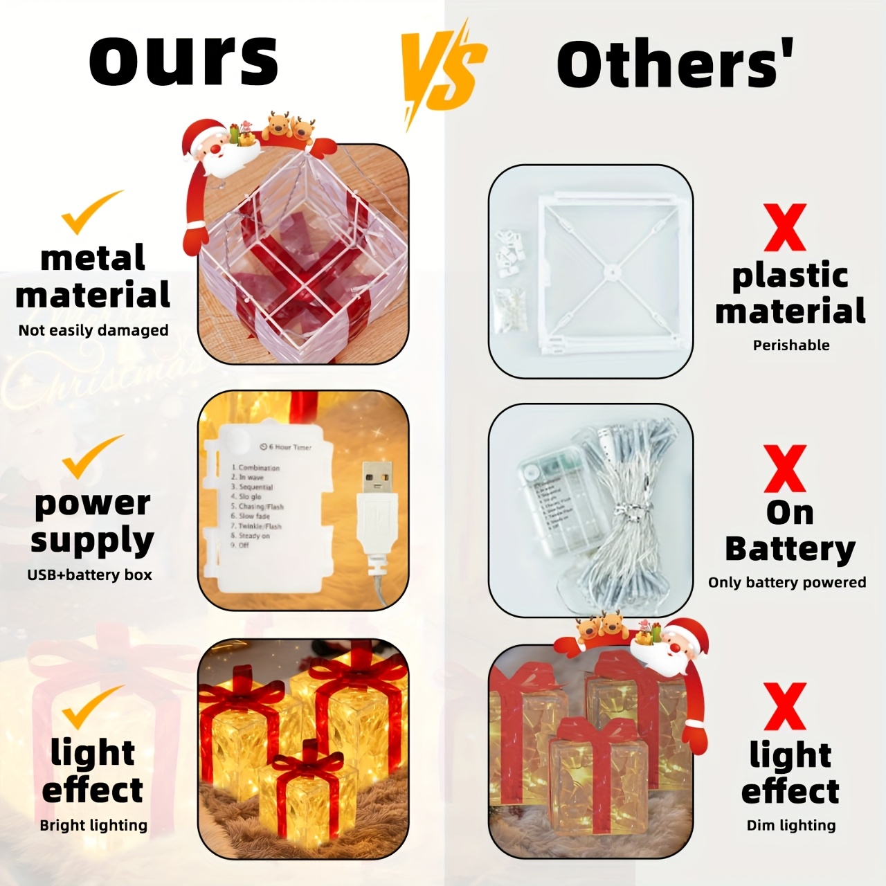 You will receive3 glowing figuremas gift boxes(60 LED beads)Product FeaturesThe product does not require assemblyBoth USB and battery can provide powerPress and hold the timer function to turn on for 8 hours and off for 16 hours